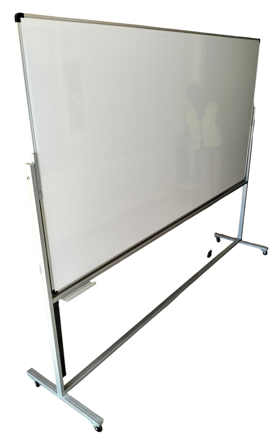 The 8x4ft double sided whiteboard offers a large, versatile writing surface for presentations and lessons.